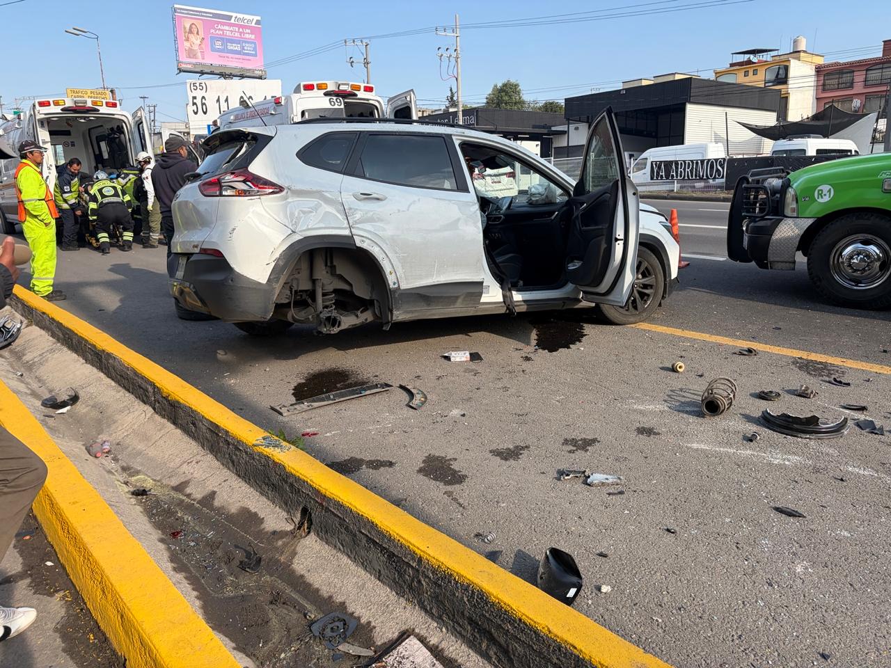 El percance ocurrió sobre el kilómetro 50 de la carretera México-Toluca, a la altura de la zona conocida como La Estación, cuando el conductor de una camioneta Chevrolet Tracker perdió el control de la unidad y se impactó violentamente contra un poste.