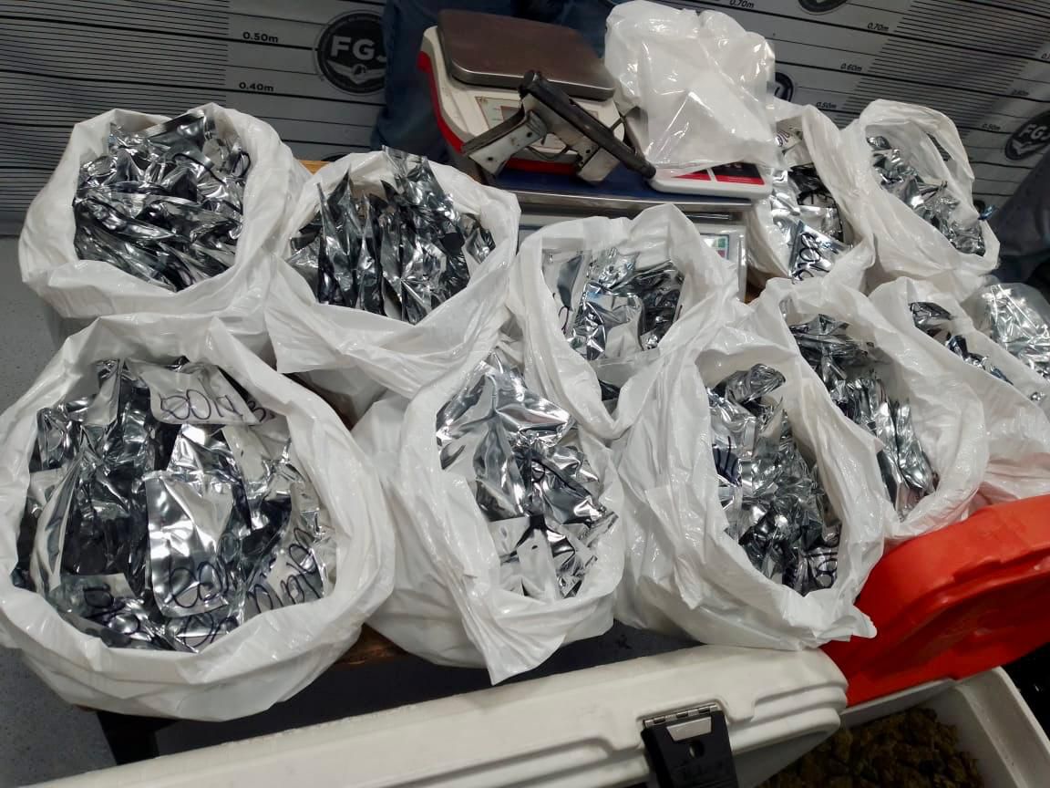 El mandamiento judicial fue otorgado, por ello Policías de Investigación, así como elementos de la SSPC del Gobierno del México y de la Guardia Nacional se trasladaron al inmueble, donde fueron aseguradas cajas, bolsas, recipientes, contenedores tipo “hieleras” y envoltorios con narcóticos como hierba verde con las características de la marihuana, cocaína y metanfetamina, con un peso aproximado de 37 kilogramos.