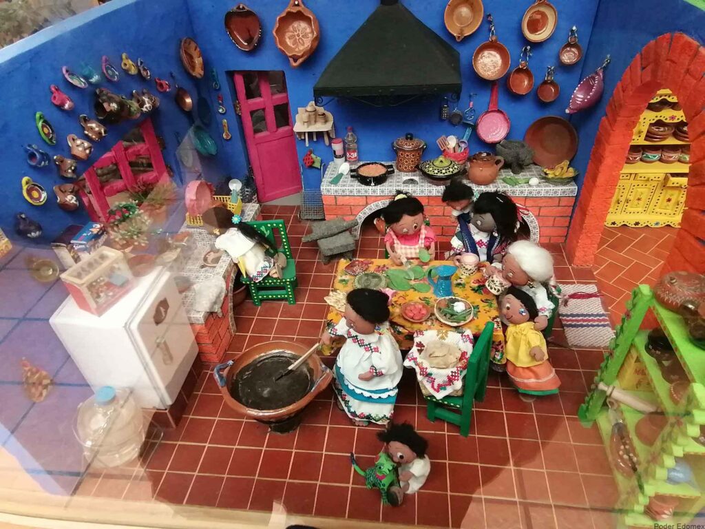 Ahí se representan más de cincuenta escenas de la vida cotidiana y de las festividades que conforman la idiosincrasia del mexicano, sí, las conocemos bien, haga memoria: la feria, el día de muertos, fiestas patrias, los velorios, los jolgorios, amén de otros rituales que nos conforman como el arte y obra de comer tacos, la panadería, el universo de los oficios y las artesanías de las mágicas manos de nuestro pueblo.