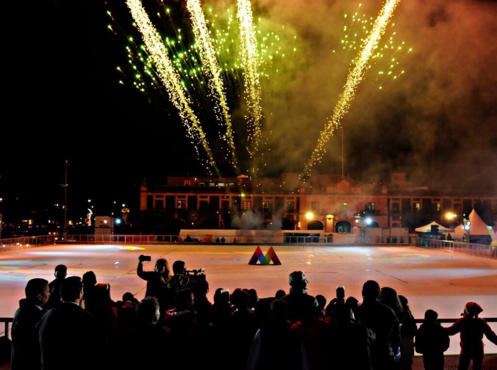 La Plaza de los Mártires de la capital mexiquense rebosó de luz,  color y alegría con los espectáculos de fuegos artificiales, patinaje sobre hielo y magia que se prepararon para el acto de apertura de la segunda edición de la Temporada de “Invierno en Patines”, donde los mexiquenses podrán disfrutar de manera gratuita de una pista de patinaje sobre hielo y tobogán congelado, señaló el Gobernador Alfredo Del Mazo Maza.