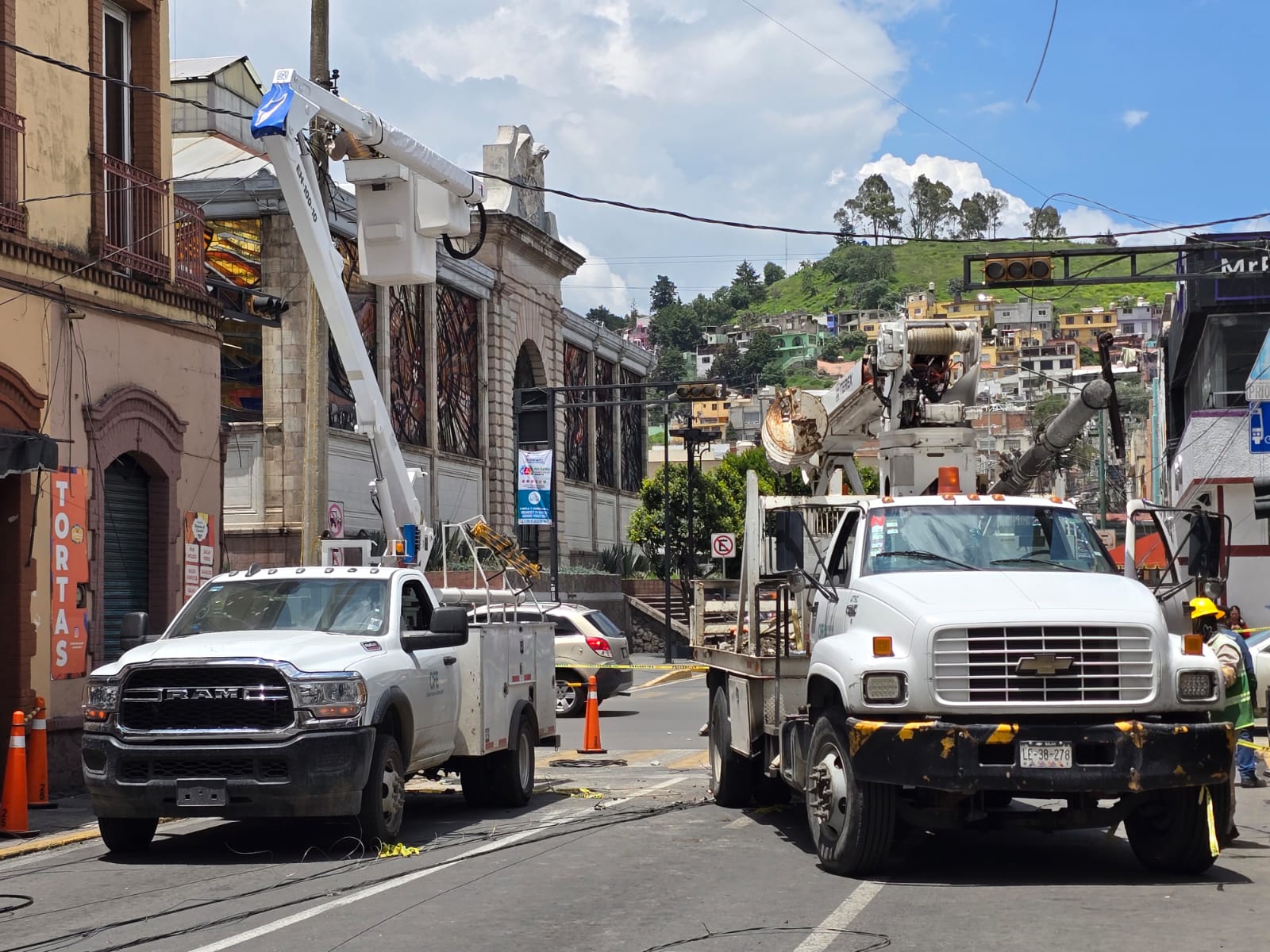 Personal de la Comisión Federal de Electricidad cambió un poste viejo que estaba a punto de caer en la esquina de las calles de Rayón y Lerdo en el centro de la ciudad de Toluca. Al lugar acudieron también integrantes de compañías privadas de telefonía e Internet, así como la policía municipal a fin de cerrar la calle de Rayón entre Independencia y Lerdo. Esto ocasionó que el tráfico a esa hora de la mañana de hoy, se desquiciara. (Fotos Emilio Varela)