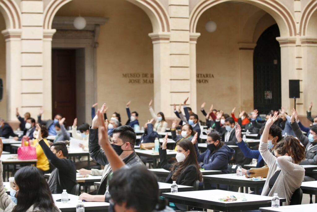 En el Patio del Centenario del Edificio de Rectoría consideró que no deben descartarse las capacidades y aprendizajes adquiridos durante la contingencia sanitaria por la pandemia de COVID-19, que exigió el cambio a clases en la modalidad virtual, posibilitó la capacitación de docentes y su adaptación a la enseñanza virtual.