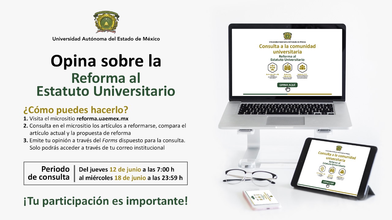 La consulta estará disponible hasta el miércoles 18 de junio a las 23:59 horas Para más información, las y los interesados pueden visitar el sitio:reforma.uaemex.mx