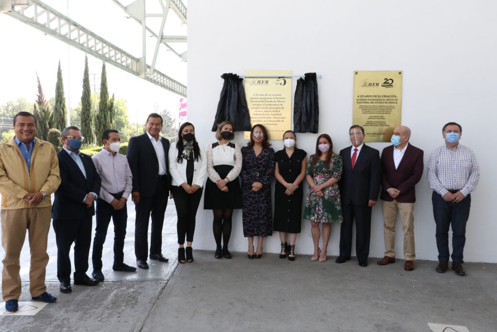 Posteriormente, en la entrada principal del IEEM, y continuando con los actos conmemorativos, las y los integrantes del Consejo General develaron una placa que al calce dice: “A 25 años de su creación, quienes integramos el Instituto Electoral del Estado de México tenemos el compromiso de cumplir con los principios de certeza, imparcialidad, independencia, legalidad, máxima publicidad, objetividad y paridad, en el desarrollo de nuestras funciones”.
