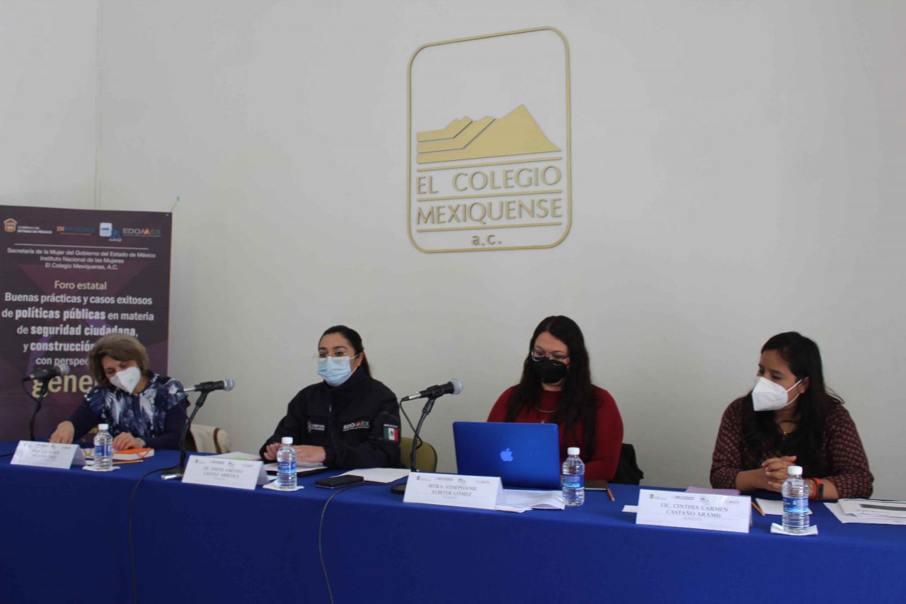En Casa Toluca de El Colegio Mexiquense, a partir del convenio firmado por esta institución con la Secretaría de la Mujer del gobierno del Estado de México y con el apoyo presupuestal del Instituto Nacional de las Mujeres, se llevó a cabo el foro «Buenas prácticas y casos exitosos de políticas públicas en materia de seguridad ciudadana y construcción de paz con perspectiva de género», en el que participaron seis expositoras de diversas dependencias estatales y municipales.