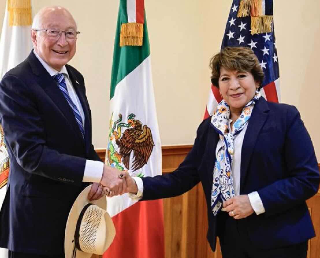 En palacio de gobierno, me reuní con el excelentísimo embajador de Estados Unidos en México, Ken Salazar y nuestros equipos de trabajo para intercambiar información sobre nuestras naciones. Un gusto compartir y estrechar lazos entre el gobierno del Estado de México y Estados Unidos, dijo la gobernadora en sus redes sociales.