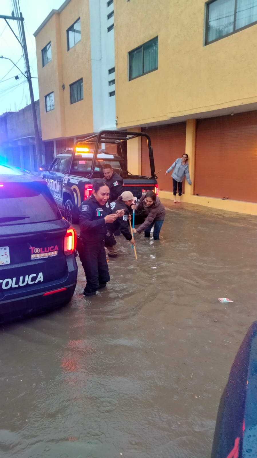 Derivado de las intensas lluvias registradas la tarde de este lunes en Toluca, elementos de la Policía Municipal y Protección Civil y Bomberos, así como del Organismo Agua y Saneamiento, en coordinación con cuerpos de emergencia, mantienen activo los operativos de monitoreo en el río Tejalpa, Verdigel, además de canales y zonas susceptibles a encharcamientos.