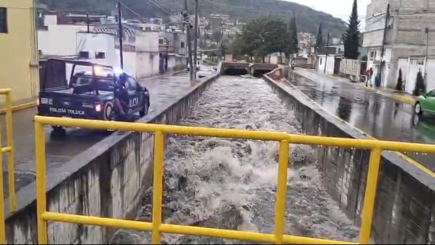 Además, en San Pablo Autopan y en San Andrés Cuexcontitlán, el nivel del caudal del río Tejalpa se encuentra a un 40% de su capacidad, mientras que en su paso por las calles Media Luna, Álamo y Ocote se mantiene un 70%.