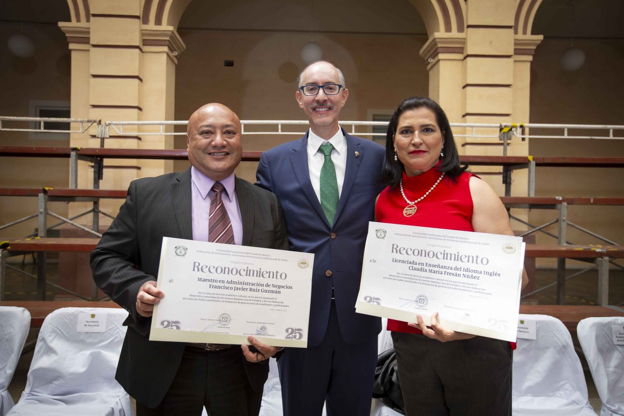 Gracias al trabajo de las y los docentes se construye la historia de una de las mejores universidades de México aseguró el rector de la Universidad Autónoma del Estado de México (UAEMéx), Carlos Eduardo Barrera Díaz durante la entrega de reconocimientos por 25, 30, 35 y más años de Servicio Académico Laboral de la Federación de Asociaciones Autónomas del Personal Académico (FAAPAUAEM).