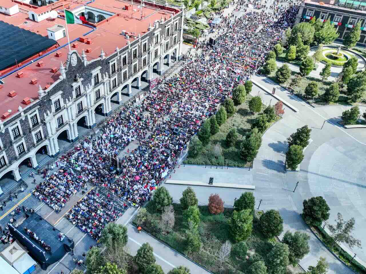 “Enviamos un mensaje a nuestra querida Presidenta de la República, la Doctora Claudia Sheinbaum Pardo: Presidenta, no está sola, aquí estamos miles de compañeros mexiquenses que estamos contigo, que día con día, a través de nuestro trabajo y servicio a los demás, estamos haciendo patria”, señaló la Mandataria estatal.