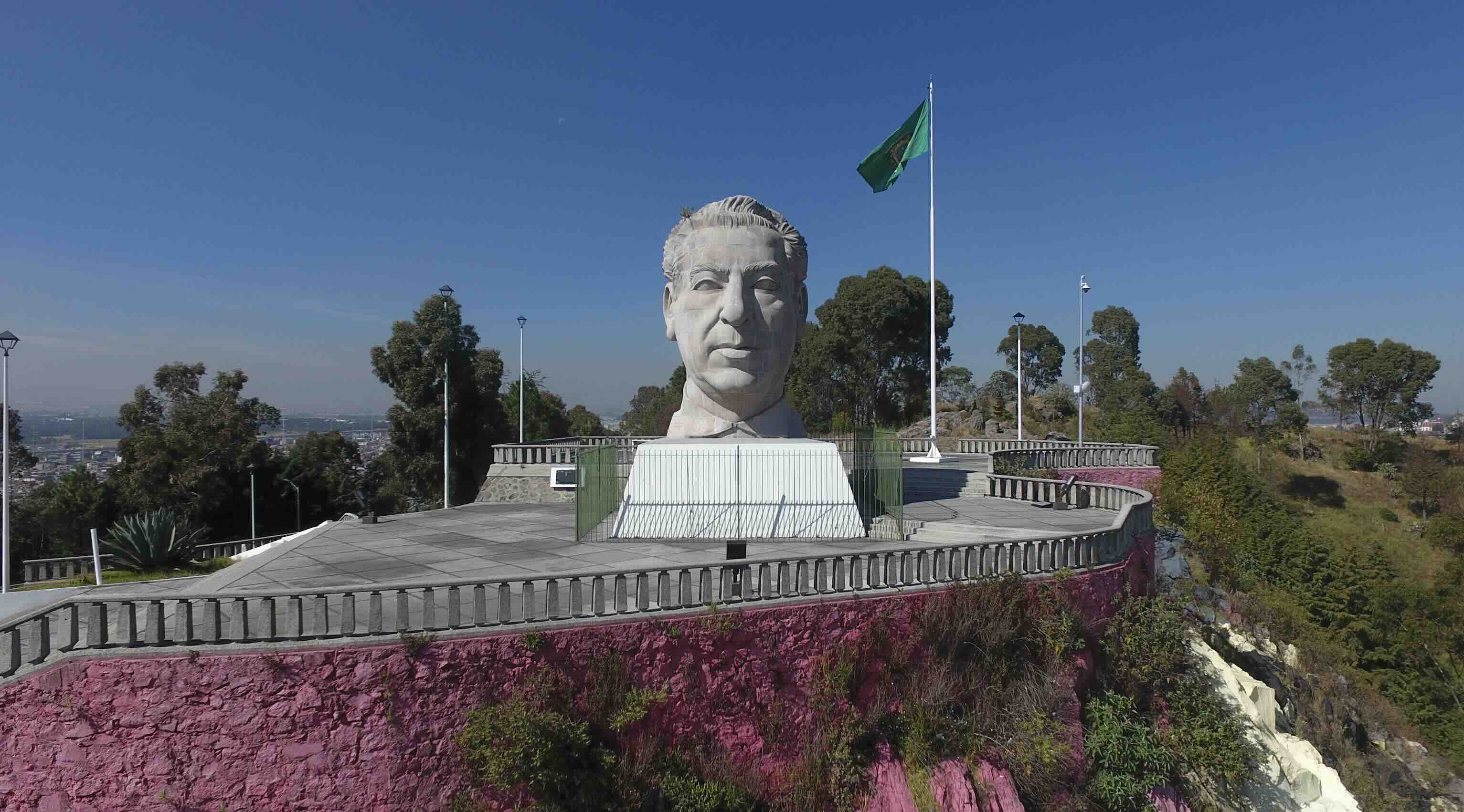 La escultura monumental dedicada al que fue presidente, Adolfo López Mateos, que se encuentra en el mirador que está en la cima del Cerro de Coatepec, es una escultura revestida de cantera rosa proveniente de Durango, mide 12 metros de altura y pesa alrededor de 60 toneladas. A su lado, hay una asta bandera, que desde hace unos meses luce la de la UAEM para significar el territorio de Ciudad Universitaria.