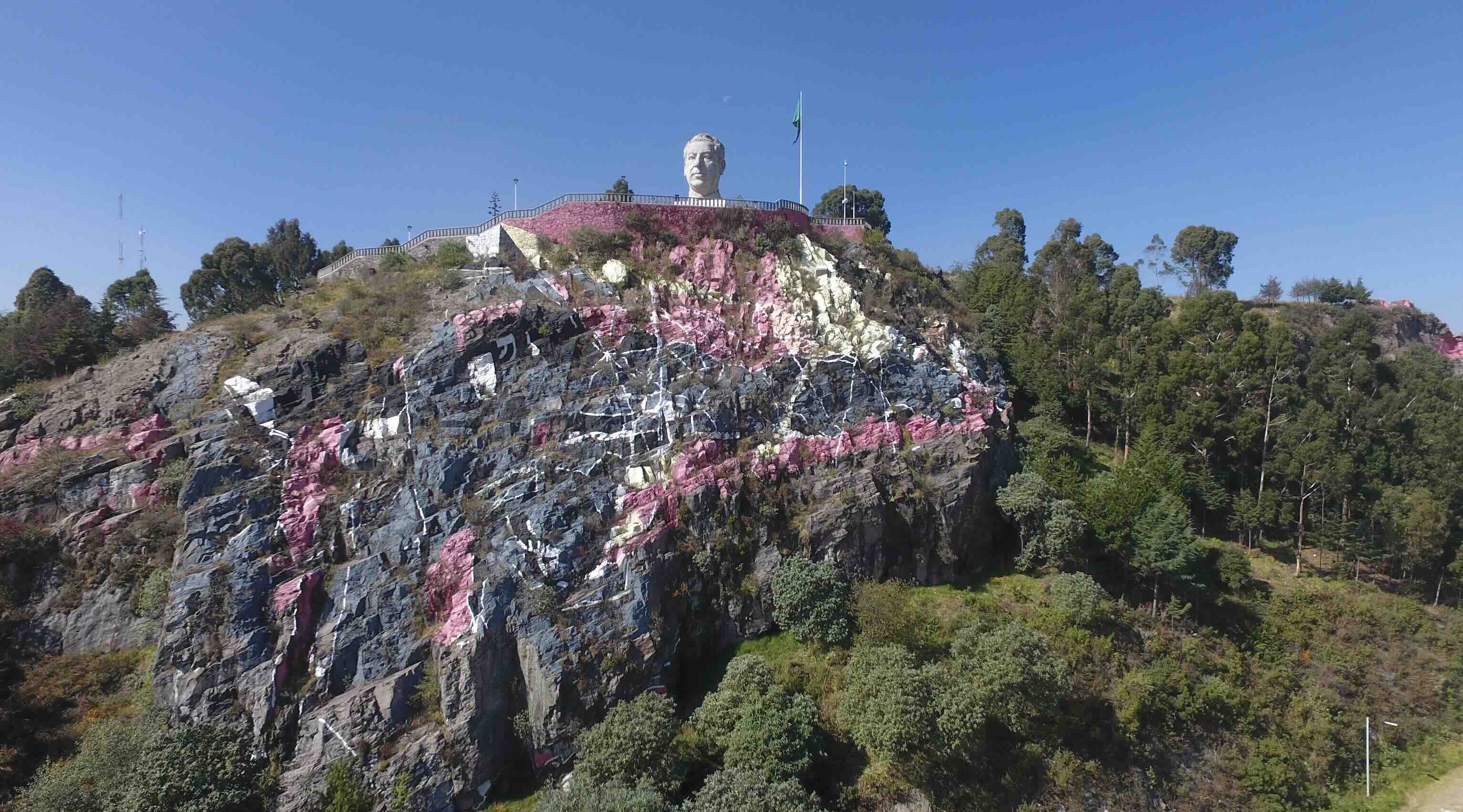 Así se pensó y así, me tuve que quebrar la cabeza para hacer precisamente eso, la cabeza de López Mateos, colocada en la punta del cerro para que la gente cuando pasara lo contemplara en toda su dimensión, no en el cuerpo sino en el asiento de las ideas, así tuve que trabajar para calcular las proporciones, que fuera fácilmente identificable y que comentaran a voz en cuello, sí se parece, sí es López Mateos, la gente tenía que verlo desde los ángulos en que pasara y no tratara de adivinar quién era sino de precisar porque un letrero por encima de ella iba a verse demasiado burdo, ridículo y espantoso. Eso no debía ser. Cumplí con el encargo y ahí la puede usted ver desde la distancia en que se ubique.