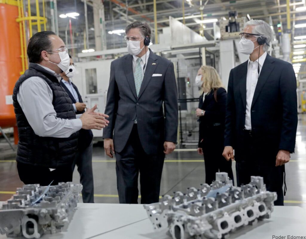 VISITA ESTRATÉGICA: El gobernador Alfredo Del Mazo Maza y el Embajador de Estados Unidos en México, Christopher Landau (quien ya compró su billetito para la rifa del avión presidencial, a fin de hacerle el gasto a AMLO), recorrieron las Plantas de Estampados y Ensamble de Fiat Chrysler, y la de General Motors México, en Toluca, acompañados por directivos de estas empresas y miembros del Cuerpo Diplomático del país vecino, con quienes el mandatario mexiquense sostuvo reuniones de trabajo