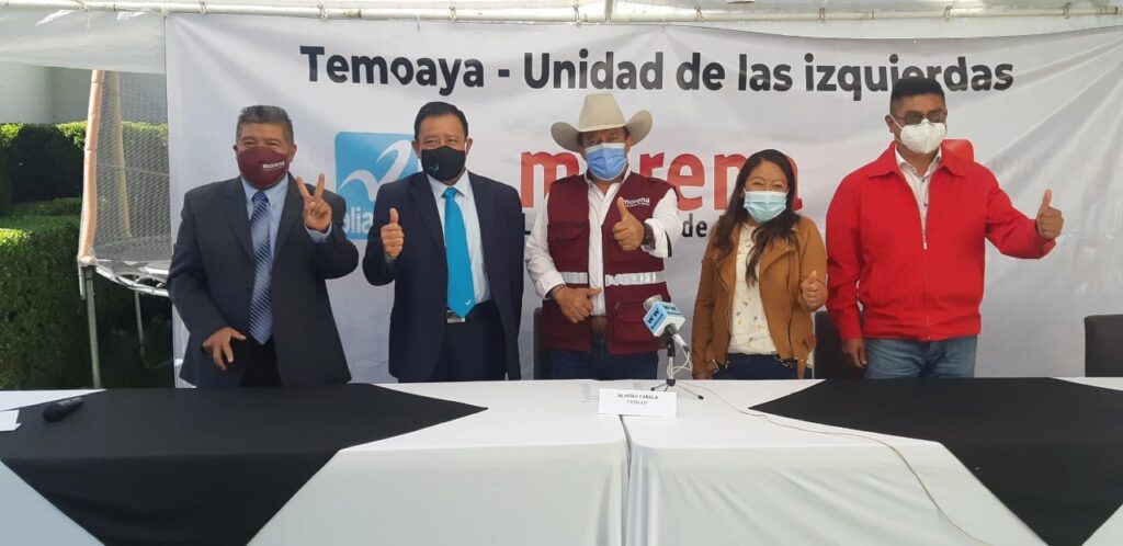 Integrantes de la unidad de Izquierda por Temoaya conformada por Morena, Partido del Trabajo y Nueva Alianza, dejaron claro que en el municipio no se apuesta por la reelección de autoridades y que por ello, se ha trabajado en un candidato que represente a las tres corrientes políticas, no sin antes privilegiar el bienestar de la población.