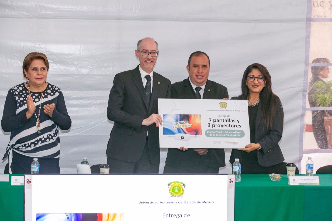 Cabe resaltar que, en este marco, el rector Carlos Eduardo Barrera Díaz entregó siete pantallas de 65 pulgadas y tres proyectores al Plantel “Isidro Fabela Alfaro” de la Escuela Preparatoria, así como cinco pantallas de 65 pulgadas y cinco proyectores al Centro Universitario Atlacomulco, con la finalidad de que las comunidades de ambos espacios puedan desarrollar de una mejor manera sus actividades académicas.