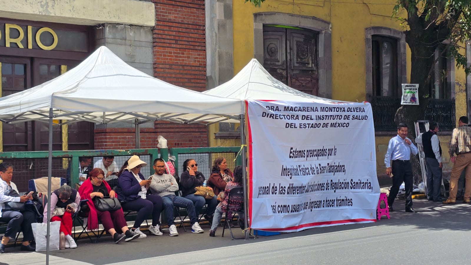 Trabajadores del sector salud se manifestaron frente a las oficinas del ISEM para exigir la reubicacion definitiva del personal que trabajaba en el edificio de Regulación Sanitaria en Josefa Ortiz y Morelos en Toluca.