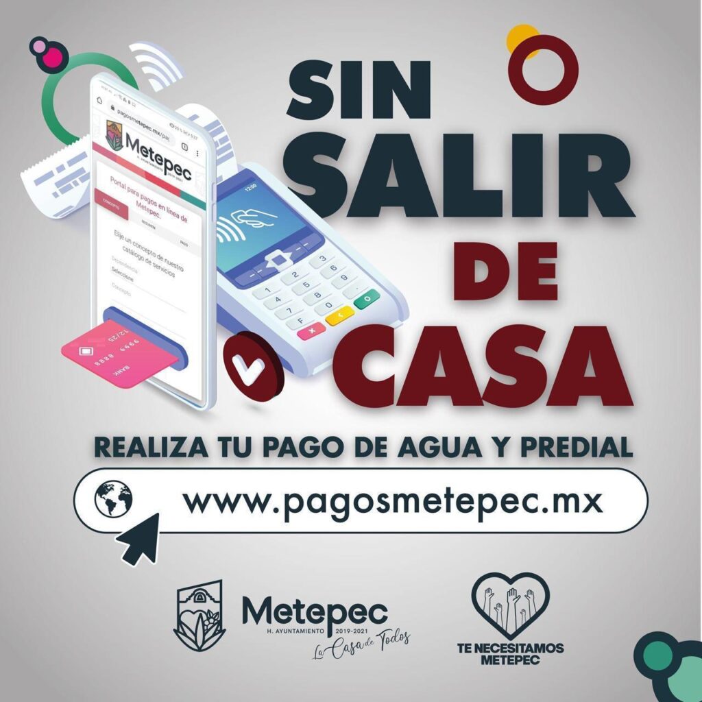 Como parte de las acciones de Mejora Regulatoria y atendiendo las medidas de prevención ante posibles contagios por el SARS CoV-2, el gobierno de Metepec dispone a la ciudadanía, la posibilidad de realizar los pagos en línea, tanto de predial como por derechos de agua potable.