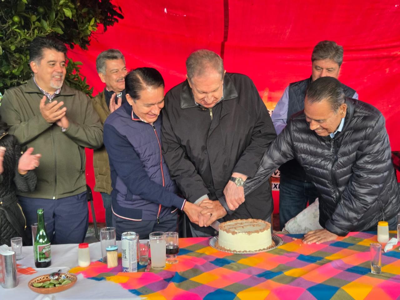 Por cierto el brindis por el cumpleañero se llevó a cabo con el exitoso vino Hilo negro, surgido del valle de Guadalupe en Baja California y perteneciente a empresarios mexiquenses. El pastel fue partido al alimón por el festejado, Víctor Humberto Benítez Treviño y Mario Santana, actual presidente de Villa Victoria y quien ha ganado tres elecciones consecutivas. No conoce la derrota electoralmente hablando.