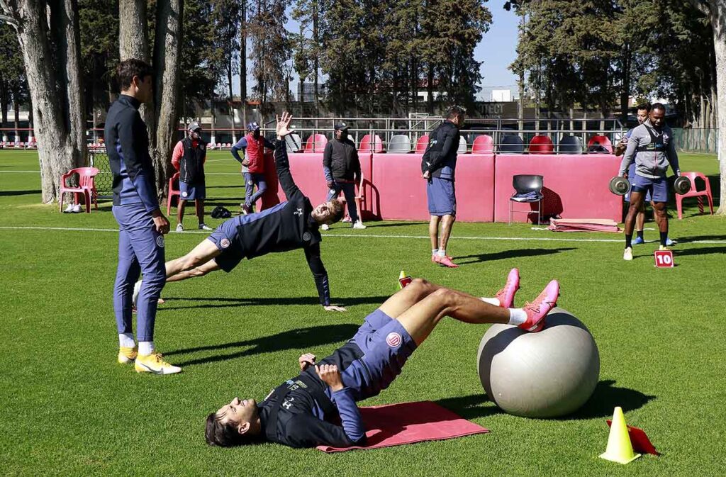 Previo al entrenamiento de este martes, en las Instalaciones de Metepec, el equipo tuvo una pequeña charla, para luego pasar a la introducción al calor con ejercicios en piso.