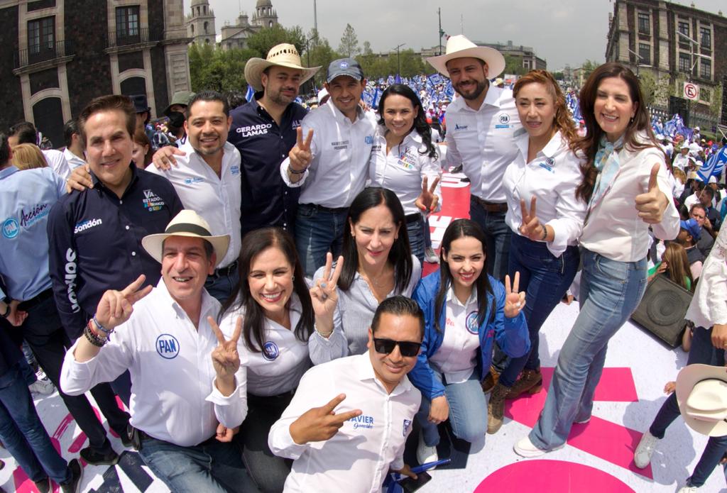 Con el respaldo de las gobernadoras de Aguascalientes, Tere Jiménez, y Chihuahua, Maru Campos y el gobernador de Querétaro, Mauricio Kuri, la abanderada dijo que los partidos que conforman la coalición son un mismo equipo, caminan hacia el mismo rumbo y defienden las mismas causas.