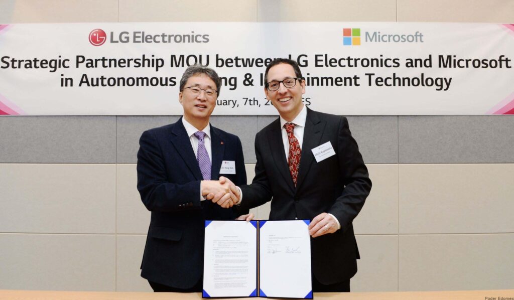 Las Vegas — LG Electronics y Microsoft firmaron un memorando de entendimiento para mejorar y hacer crecer el negocio de los sistemas autónomos de información y vehículos de LG. Bajo los términos de la sociedad, LG acelerará la transformación de su actual plataforma digital para la industria automotriz, considerada motor clave de crecimiento para la compañía, al aprovechar las tecnologías de la nube e Inteligencia Artificial Azure de Microsoft junto con el futuro software de conducción autónoma de LG.