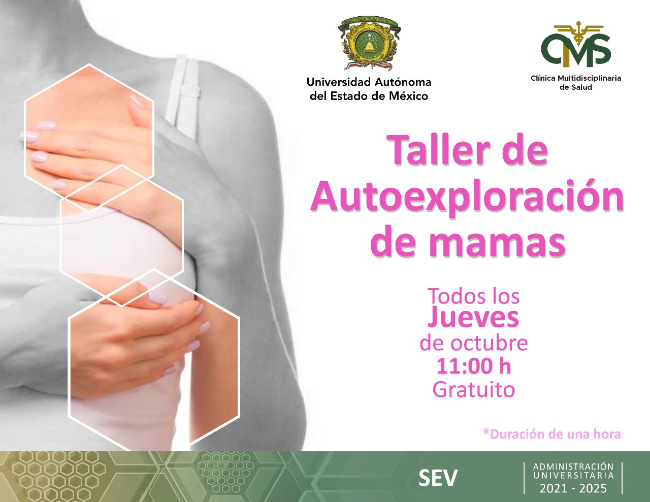 Como una medida que ayude a prevenir el cáncer de mama, la Clínica Multidisciplinaria de Salud (CMS) de la Universidad Autónoma del Estado de México (UAEMéx) ofrece de forma gratuita el “Taller de autoexploración de mamas” y el paquete de consulta ginecológica, más exploración de mama, más ultrasonido ginecológico y papanicolau, por 550 pesos.