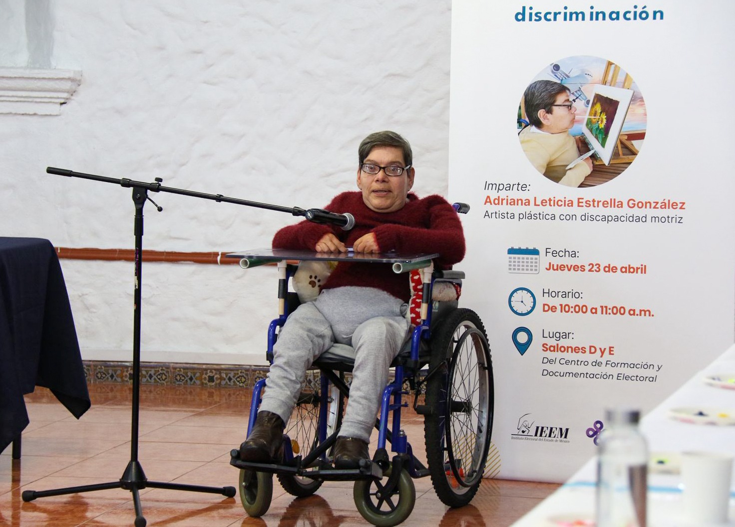 También, la artista plástica compartió experiencias personales sobre los retos que ha enfrentado en espacios educativos y sociales, evidenciando cómo la falta de accesibilidad y los prejuicios pueden convertirse en obstáculos, pero también cómo la perseverancia, disciplina y la voluntad permiten transformar esas realidades.