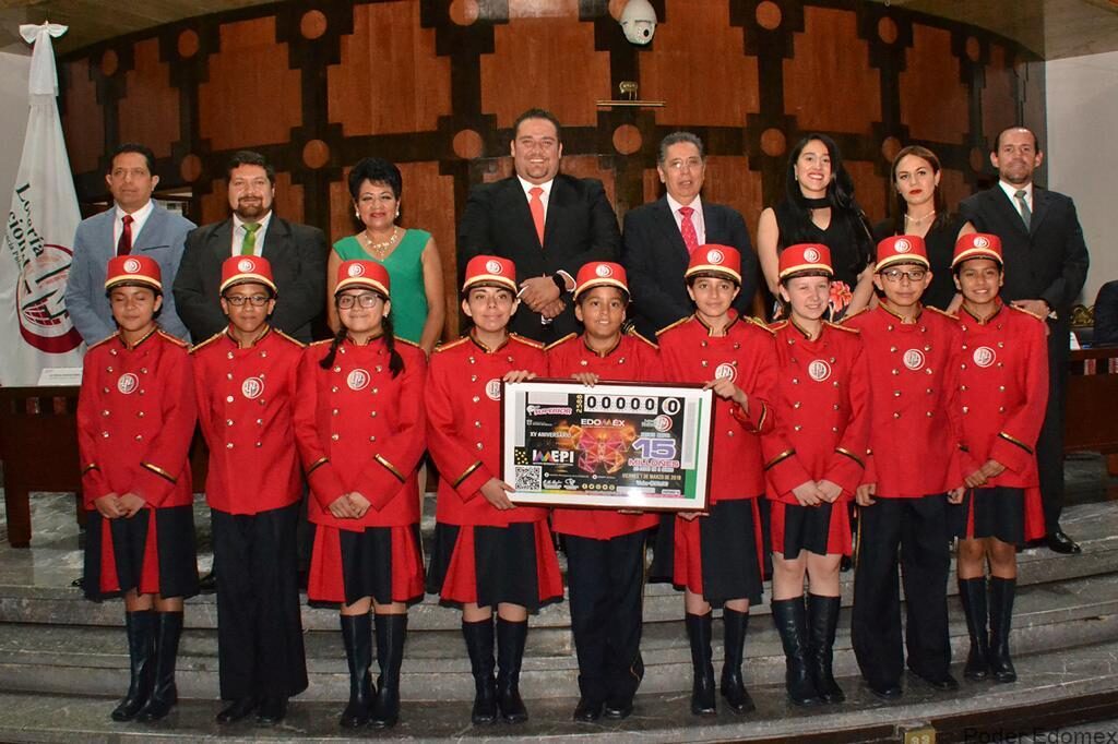 El Director del Instituto Mexiquense de la Pirotecnia (Imepi), Derek Cancino Aguilar, acompañado del Gerente de Crédito y Cobranza de la Lotería Nacional para la Asistencia Pública, José Ortega, encabezó el Magno Sorteo 2588 con el boleto impreso que conmemoró el 15 aniversario de la creación del Imepi.