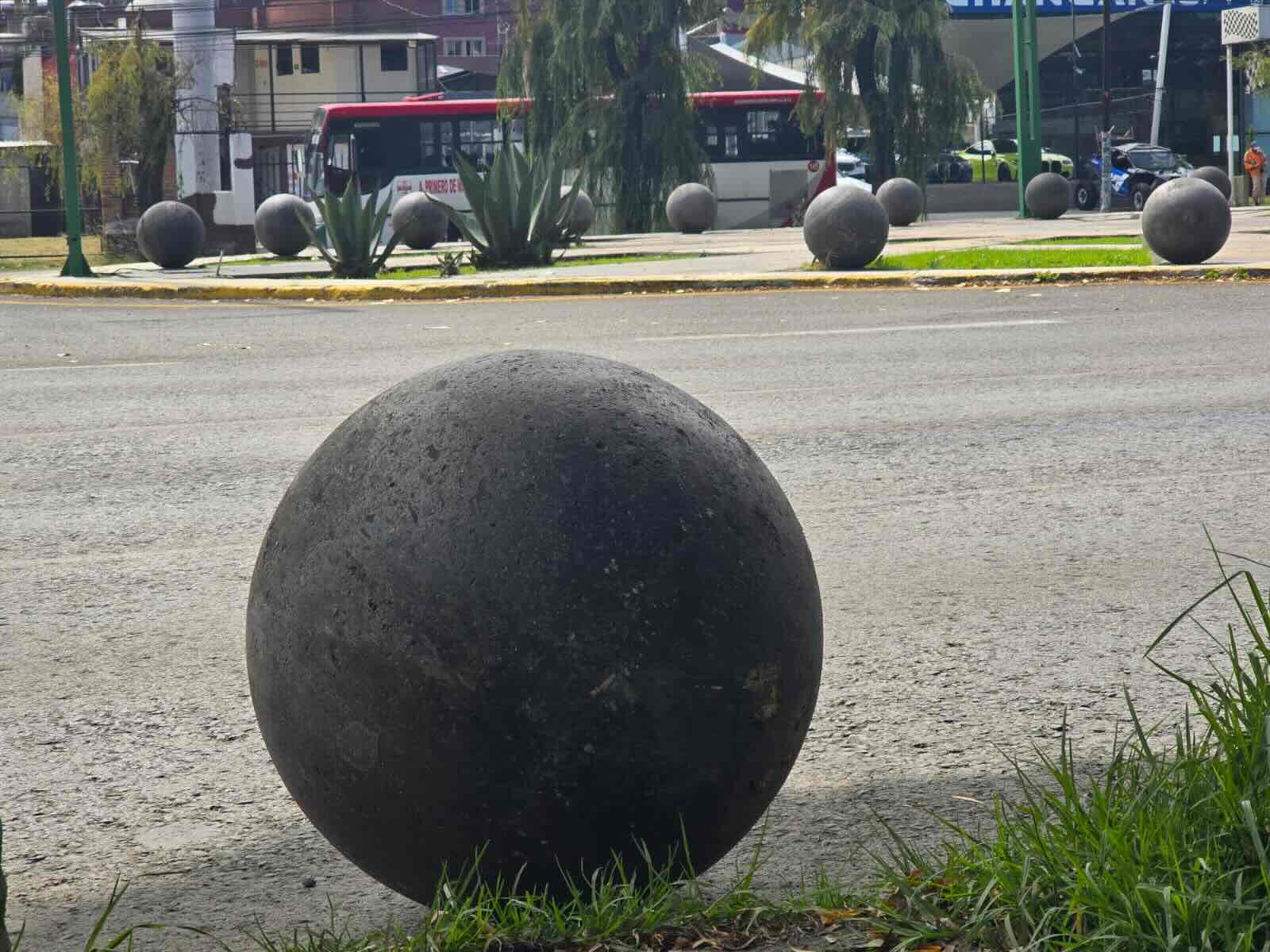 La esfera de aproximadamente un metro de circunferencia, rodó sin ningún control, seguramente al desprenderse de su base en el camellón del parque lineal, sobre avenida Pino Suárez. Afortunadamente no causó ningún daño, a ningún vehículo ni tampoco a ningún transeúnte.