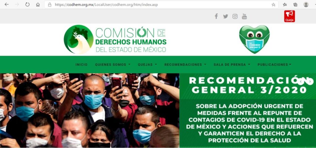 Así lo expresó al informar que suman ya quince municipios mexiquenses los que han enviado los Oficios de Aceptación de la Recomendación General 3/2020 sobre la adopción urgente de medidas frente al repunte de contagios de COVID-19 en el Estado de México y acciones que refuercen y garanticen el derecho a la protección de la salud, emitida el pasado 14 de diciembre de 2020.