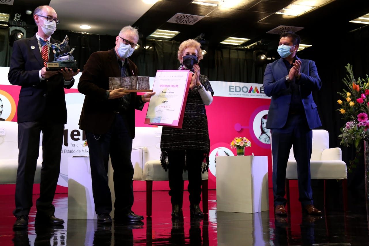En esta ceremonia, el poeta, ensayista y traductor mexicano, David Huerta, recibió el Premio FILEM 2021, a través del cual el Estado de México reconoce su trayectoria que forma parte de la historia de las letras de nuestro país, ya que ha compartido su talento al impartir talleres de poesía en todo México, donde también ha ofrecido lecturas y, en el mundo, pues sus libros han sido traducidos al inglés, francés y finés, entre otros idiomas.
