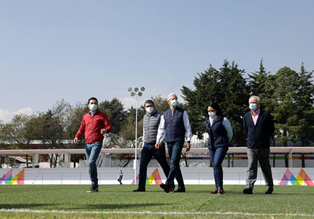 Acompañado por el Alcalde de Rayón ,Leonel González Talavera, por Eric Sevilla Montes de Oca, Secretario de Desarrollo Social y por Rafael Díaz Leal Barrueta, Secretario de Desarrollo Urbano y Obra, el Gobernador recorrió las instalaciones de esta unidad deportiva, como las canchas de futbol, de frontón de madera, de futbol rápido y la cancha de basquetbol.