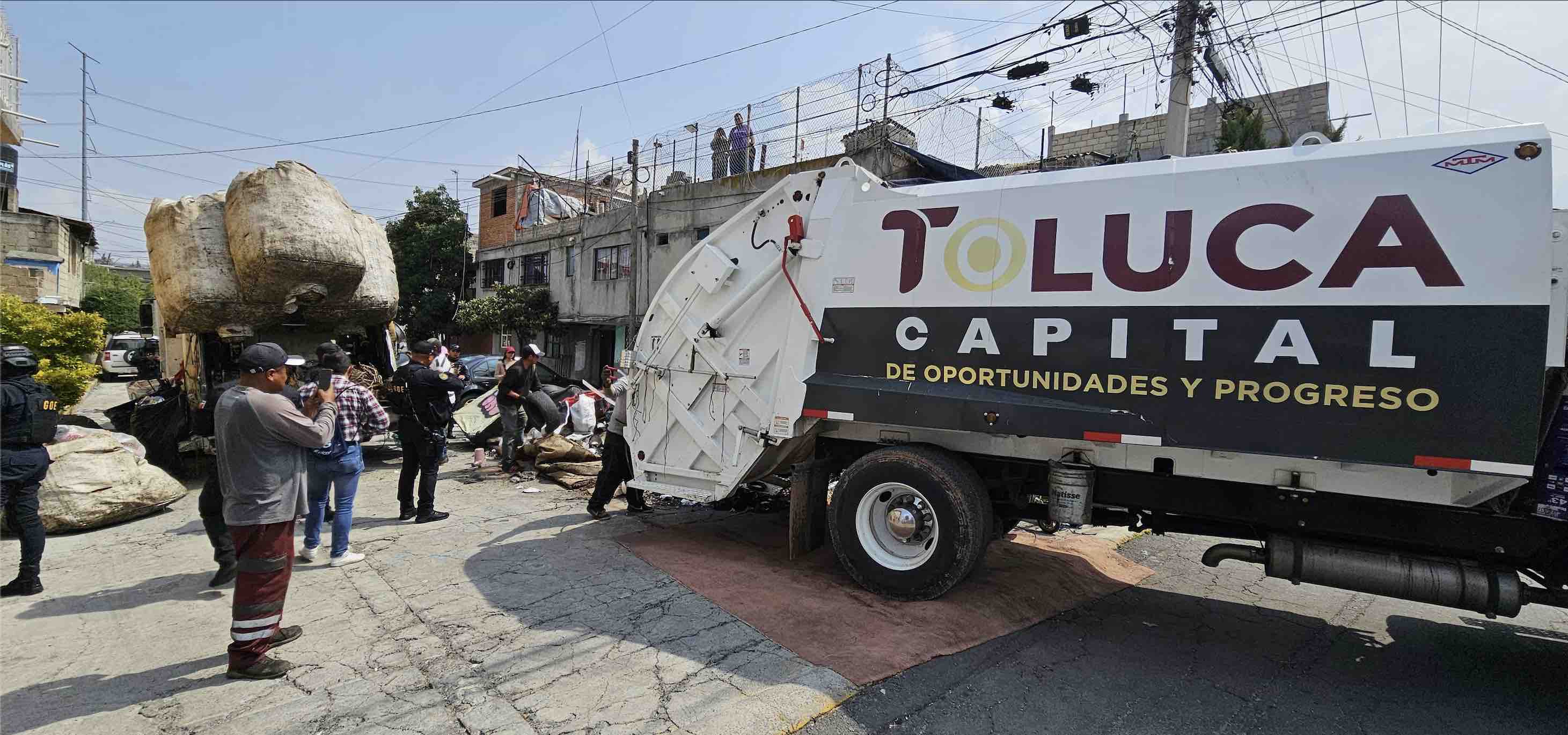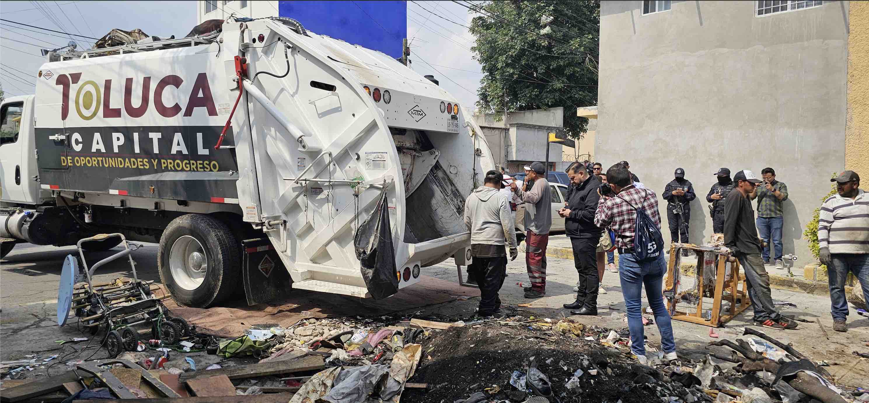 En atención a una denuncia ciudadana y en congruencia con las políticas municipales para mantener una ciudad limpia y ordenada, el Gobierno de Toluca retiró cerca de cinco toneladas de basura acumulada en la calle Laguna Misteriosa, casi esquina con Lago Atabasca, en la colonia Nueva Oxtotitlán.