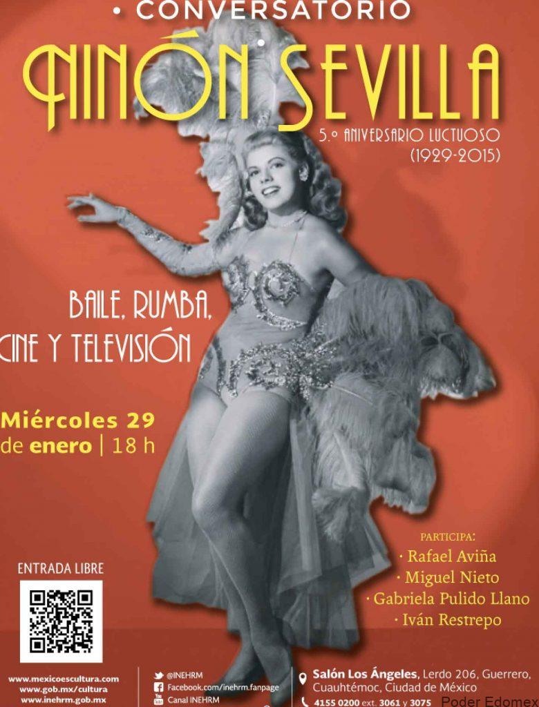 Mediante el conversatorio Ninón Sevilla: baile, rumba, cine y televisión, los historiadores y expertos Gabriela Pulido Llano, Miguel Nieto, Rafael Aviña e Iván Restrepo rendirán homenaje a un ícono de la cultura popular mexicana de la segunda mitad del siglo XX por su quinto aniversario luctuoso.