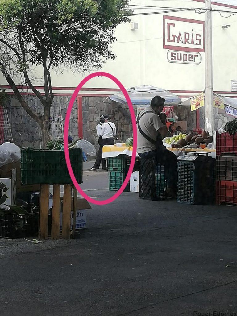 Pero en el Garis que esta a pocos metros (Vicente Guerrero y Paseo Tollocan) ahí los cadetes aglutinados prefieren cargar bolsas del súper que cuidar la seguridad, o bien se mantienen platicando entre ellos.