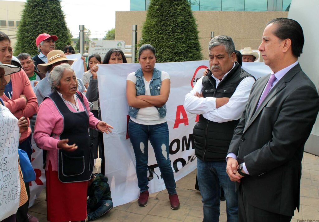 Tras entregar el documento de queja al Primer Visitador General, José Benjamín Bernal Suárez y el Visitador General de Toluca, Víctor Delgado Pérez, los habitantes de la comunidad encabezados por su representante, Erika Espinosa Martínez y el delegado, Eloy Albarrán Reyes, fueron escuchados por el presidente de la Comisión de Derechos Humanos del Estado de México (Codhem).