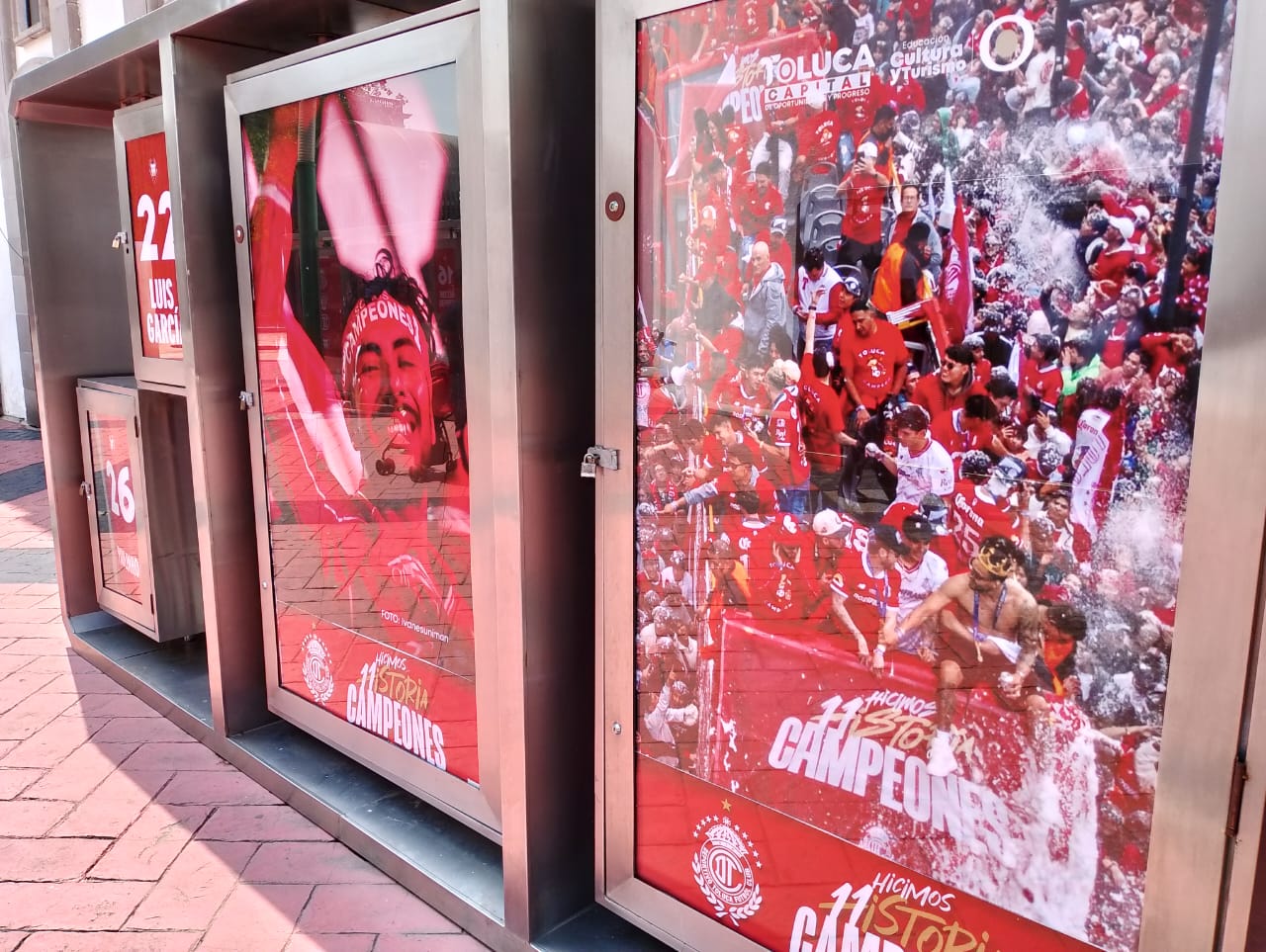 La emoción por la victoria del Club Deportivo Toluca sigue vigente, tan es así que la exposición en la Plaza Fray Andrés de Castro continúa abierta, con fotografías actualizadas que muestran la celebración de la undécima copa