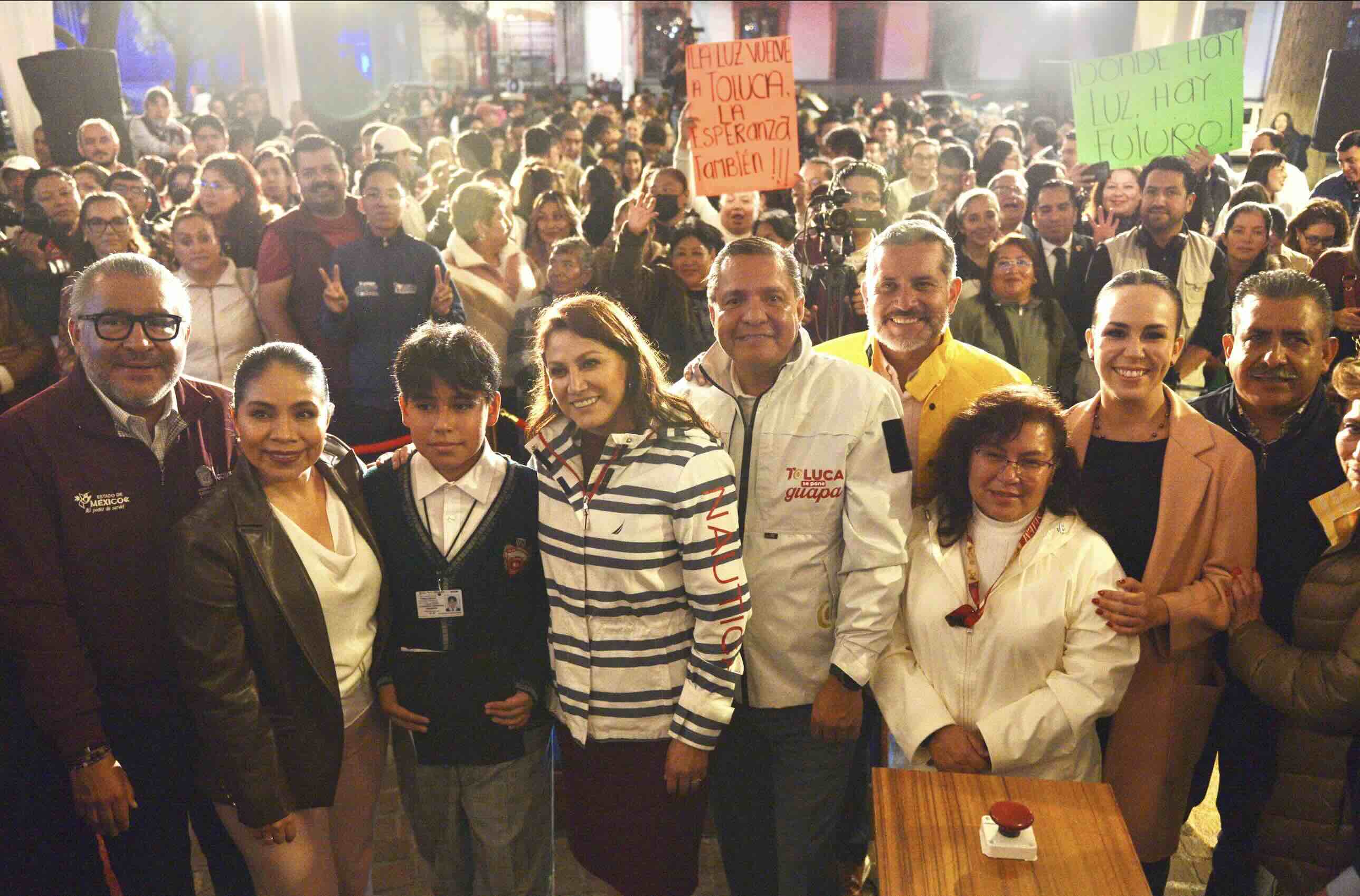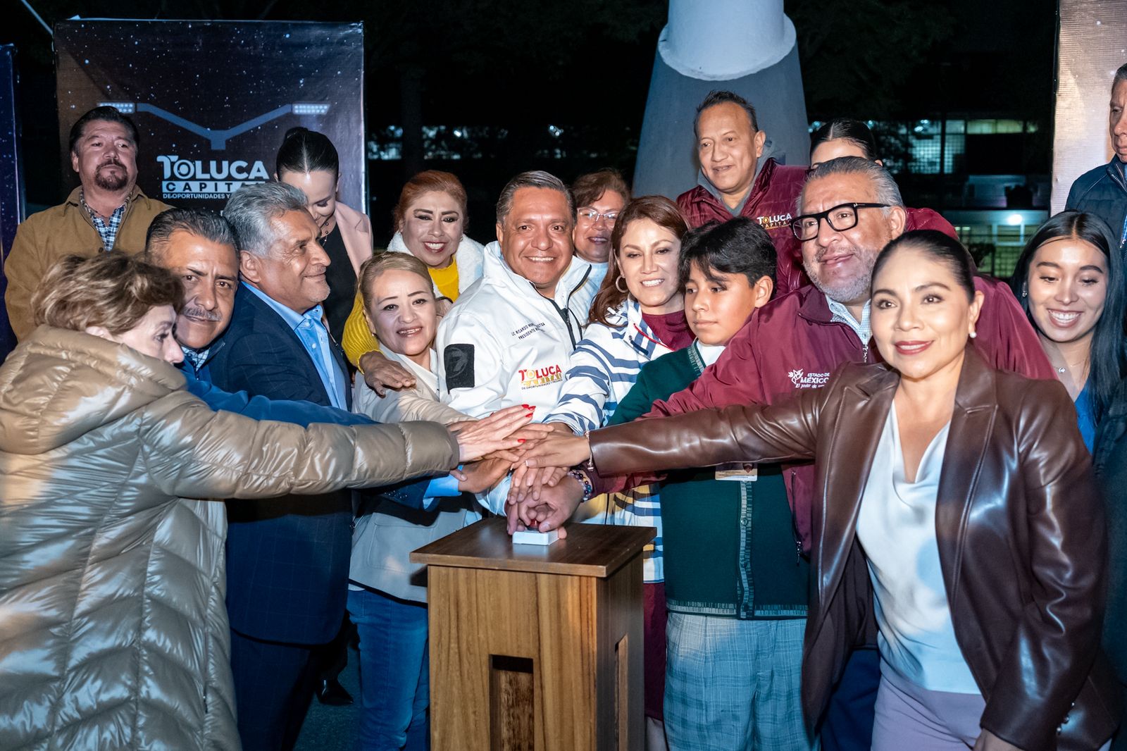 Acompañado por la Presidenta del DIF Toluca, Rocío Pegueros, el Secretario General de Gobierno del Estado de México, Horacio Duarte Olivares, Claudia Gil Anzures y la magistrada María José Bernaldez asi como de las y los delegados, integrantes del Cabildo y servidores públicos municipales, el alcalde destacó que cada vez se está más cerca de alcanzar la meta trazada de poner en funcionamiento 12 mil 500 lámparas, que junto con la red de alumbrado público superará las 25 mil en todo el municipio.