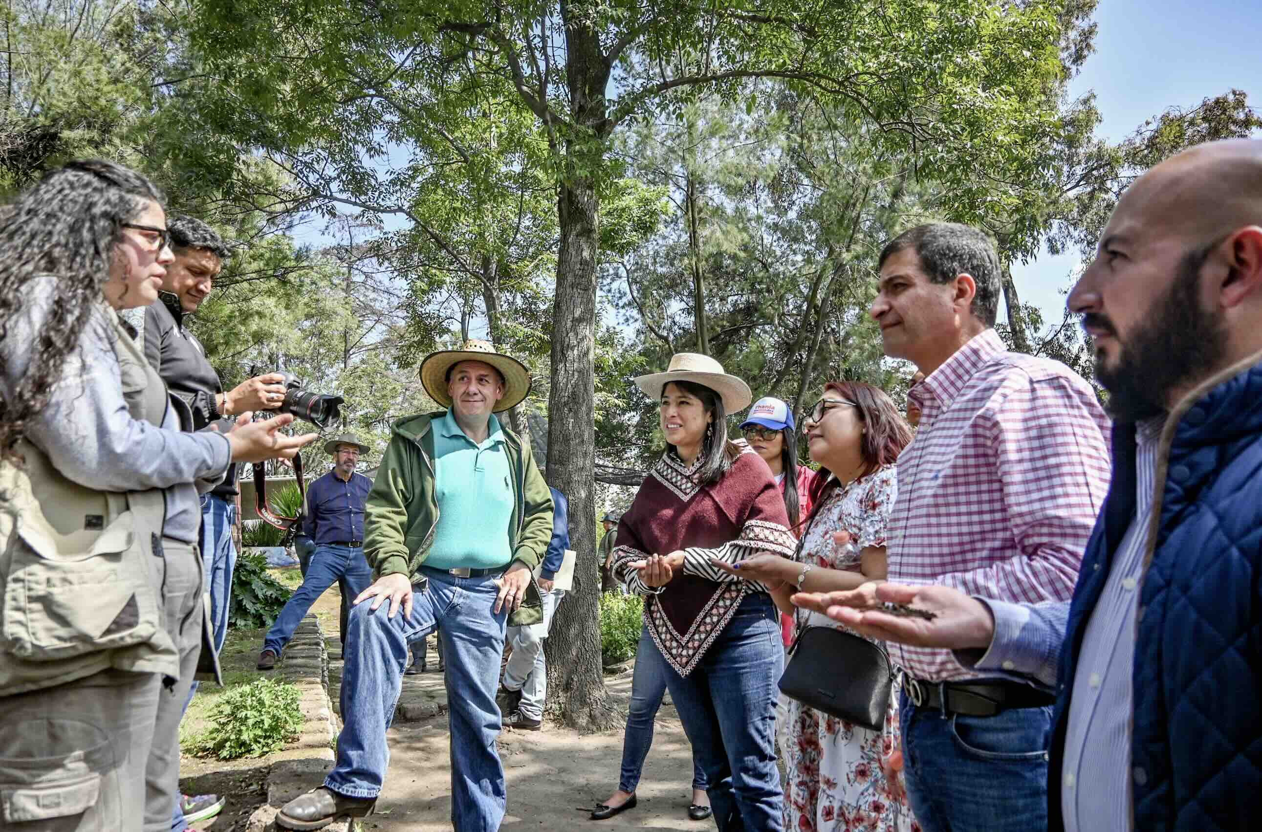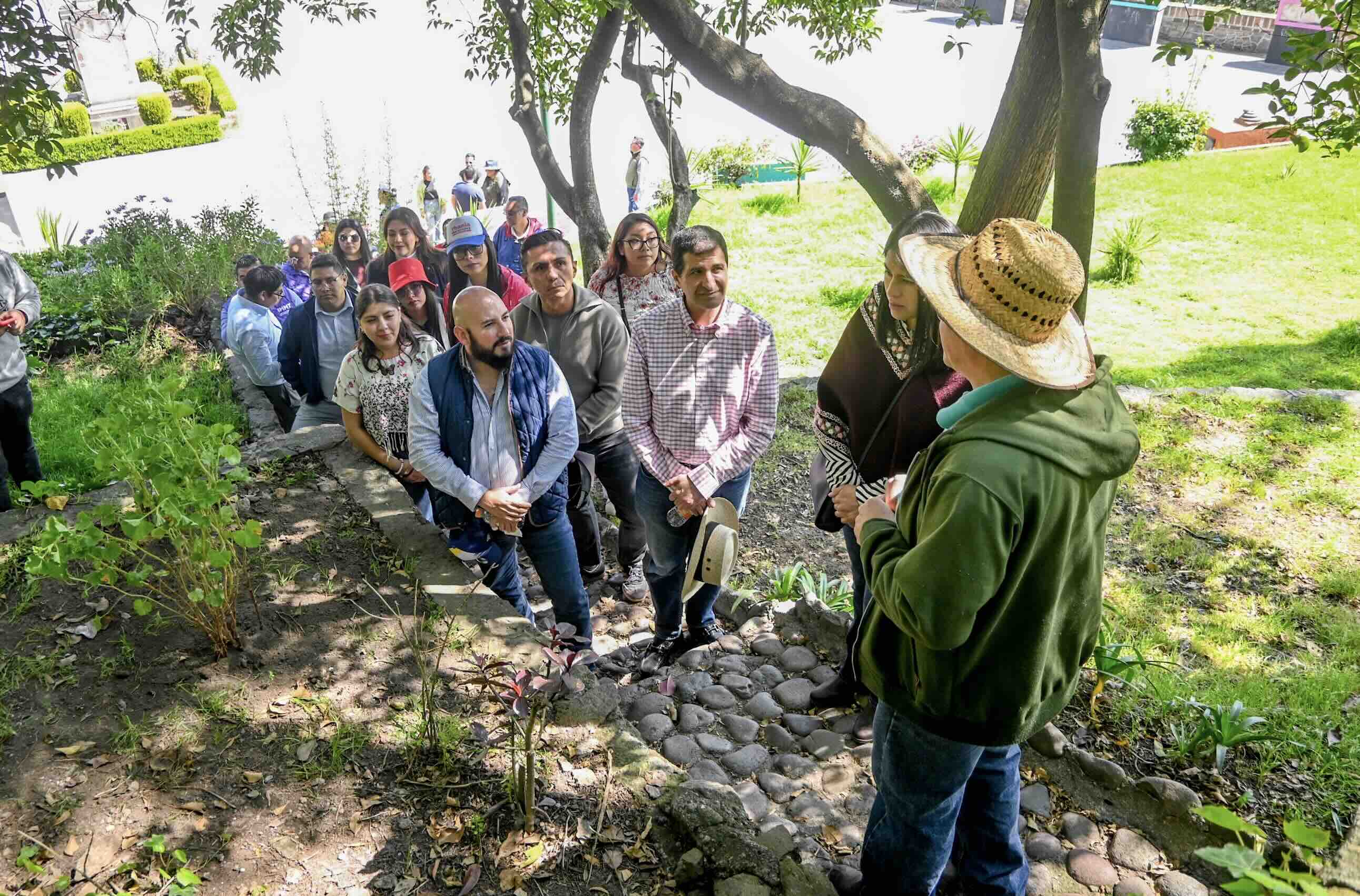 Rodolfo González, Presidente Municipal de Temoaya, y Berenice Carrillo, Presidenta Municipal Electa de dicha alcaldía, conocieron el enfoque integral de este espacio natural, que incluye el Hotel para Insectos, jardines polinizadores, el Centro de Educación Ambiental, una sección dedicada a la composta y el cultivo de plantas medicinales.