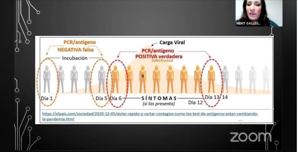 Asimismo, Merit Galleos explicó que la aplicación de pruebas para el diagnóstico oportuno de la Covid-19 ha resultado clave, y es importante que la población se informe y comprenda como funcionan, para no bajar la guardia en la lucha contra el virus. “Es importante que identifiquemos esto porque a veces no sabemos cuándo es el momento propicio en el que debemos realizarnos una prueba de detección de Covid”.